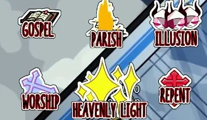 - Parish: Transpotará a un jugador a una habitación especial en la que tendrá que esquivar las diferentes columnas de fuego si no quiere perder vida.