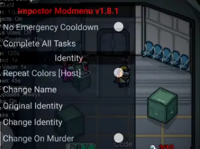 Nuestra versi贸n de Impostor MOD Menu para Android (v1.8.1) es la m谩s completa que vas a encontrar a d铆a de hoy en internet. Impostor MOD Menu APK nos permite instalar en nuestro Android una versi贸n modificada del juego original que, aunque a primera vista parezca id茅ntico, dentro del juego nos ofrece muchas posibilidades nuevas: hacks de velocidad, visi贸n, y muchos otros.